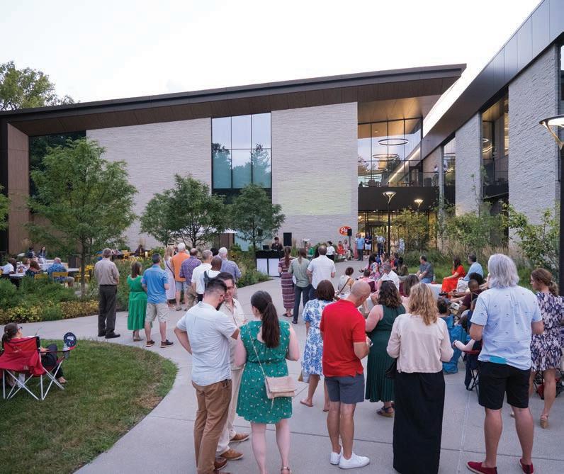This project transformed two floors of mixed-use space, formerly housing a restaurant and bar, into an immersive retail destination for a global sporting goods brand. The flagship extends beyond the sale of merchandise, celebrating the brand’s deep connection to baseball and its visibility as a St. Louis-based company since 1887. Solutions to merge two tenant spaces into a cohesive, stadium-like atmosphere included extending the storefront 20 feet, adjusting patio elevations and creating a 26-foot-by-26-foot vertical opening between floors, anchored by a grand staircase that unifies the space and serves as a visual focal point. The design concept focused on stadium-inspired design elements –open, exposed levels, polished concrete, black fencing, woodgrain textures and a dynamic LED scorecard ribbon between floors – transporting visitors to a nighttime baseball game. Red and white accents capture the leather and stitching of the classic baseball and glove, tying in the brand’s iconic visual identity as you move throughout. Custom display cases filled with artifacts, an interactive timeline of milestones and moments in baseball history and wall graphics celebrating the company’s craftsmanship build excitement and a sense of discovery. Two floors of merchandise fully immerse shoppers in the brand, including nearly 200 baseball gloves displayed across two walls and illuminated with custom lighting and the Bat Zone lounge, offering hundreds of bats for shoppers of every age and skill level. Adding a batting cage in a mixeduse facility introduced acoustic concerns. Soundproofing solutions included insulated wall cavities, isolated drywall framing, acoustic panels, high-STC ceiling tiles and coverings over penetrations. Astroturf and carpeting further reduced sound transmission while enhancing the look and feel of a ballfield. Photography by Karen Palmer Photography
