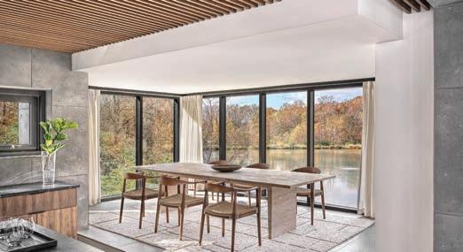 This residence is a thoughtful fusion of contemporary design and rural vernacular, situated in a landscape defined by water, stone and field. Though it is entirely new construction, the home is designed to appear as if it has evolved over time, adapting an original 19th-century stone barn — echoing the agrarian heritage of the surrounding region. This home is not just a shelter — it’s a meditation on memory, material and the enduring beauty of the landscape. Rural forms are expressed through heavy masses of locally sourced fieldstone, grounding the home in its historical context. These elements are juxtaposed against crisp contemporary volumes clad in smooth zinc panels, creating a compelling dialogue between past and present. The composition is both familiar and new — respecting the memory of place while embracing a modern lifestyle. The nearby lake serves as a major design influence, inspiring a series of integrated water features that stitch the architecture back to the shoreline. Landscaping plays a critical role in the home’s identity. Natural grasses are organized into regimented beds — offering a controlled, contemporary counterpoint to the wildness of the site and reinforcing the architectural tension between structure and nature. A hidden garden, accessed from the primary suite, provides a moment of quiet discovery. Bounded by a stacked-stone wall designed to appear aged and partially collapsed, it evokes the feeling of a long-lost ruin reclaimed by its owners as a private sanctuary.