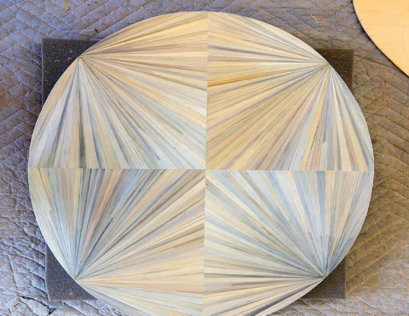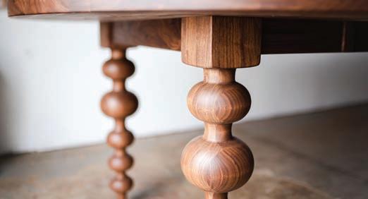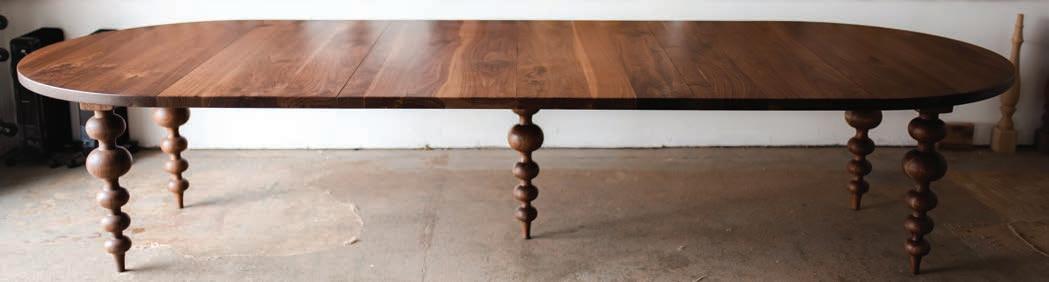 This table was designed to serve two purposes – everyday dining for a family of four and to host large gatherings seating up to 16. In its smallest form, it’s a 56-inch round table with four turned legs. To fully extend, it receives five 22.5-inch leaves bringing it to 168.5 inches –about 14 feet. When extended, an extra turned leg is installed in the middle for support. One of the main challenges of this design was placing the four legs so that everyone could sit comfortably when the table was completely condensed.