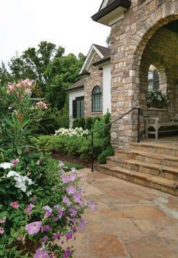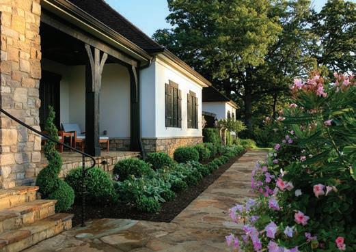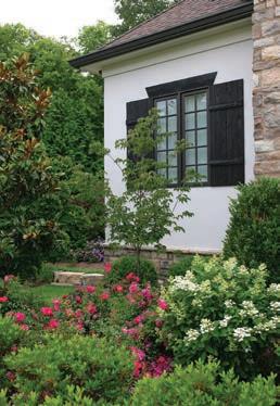 The homeowners’ intention was to complement the interior renovation they had just completed with an equally stunning landscape, forging a beautiful and peaceful sanctuary for their future together. They presented several issues and challenges for us to resolve. The most intensive being that much of the property had been shut off to them, both visually and physically, by the original landscape design. Initially their main priority was focusing on creating a beautiful landscape to surround their much used and loved veranda and patio. We expanded on that idea, offering a solution that opened up and reclaimed all of their land, creating glorious gardens that flowed throughout, connecting all spaces to each other and celebrating the reawakening of the entire property. Another challenge was that the side entry approach was disconcerting. We reimagined the space as a courtyard with a European flare, including a designated crushed limestone parking area away from the sideentry porch. The last major issue was that poor drainage conditions had eliminated their backyard from being useable in any meaningful way. Conscientious and precise re-grading developed the entire area into a beautiful sweeping lawn and calming green space that now sheds water naturally. Photography by Suzy