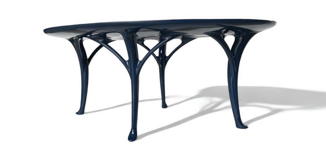 The Pershing Oval is a reorganization of Art Nouveau and Queen Ann styling merged with a desire to use a center oculus as a portal to the unused space at the center of tables, especially beneath them. This focal point location negates the use of the volumetric space beneath the table. The Pershing Oval oculus reclaims that space for light penetration illuminating the base as well as creating opportunity for vessels to hang from the surfaces, contrary to stand table/centerpiece termination at the surface of the tabletop. Matching directional lighting pendant and blown glass vessels are the start of the complimentary product offerings.
