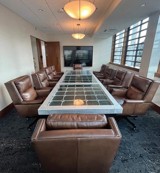 This new corporate headquarters marks a shift in the company’s workplace strategy, moving from a dedicated suburban campus to a dynamic, multi-tenant urban setting in the heart of Clayton. Spanning 50,000 square feet across three floors — including two at the top and one at the ground level flanking the building’s central lobby — the new space is designed for an inclusive office experience in a hybrid work world. The design goals were centered around attracting employees and visitors back to the office through an inspiring physical environment rather than policy mandates. The new headquarters prioritizes openness, flexibility and hospitality — creating an inviting atmosphere that supports collaboration, focused work and social engagement. These goals informed every aspect of the design, from space planning and lighting to finishes and layout. Creative use of the multi-floor footprint transformed the challenge of non-contiguous levels into an asset. Each floor serves a different but connected function, contributing to a dynamic experience throughout the office. The design embraces the building’s context, activating the ground level to connect with the central lobby while leveraging the top floors for expansive views and daylight. Space planning was intentionally people centered. All enclosed rooms, aside from two executive offices, are shared and placed inboard, ensuring that natural light and tree-canopy views are preserved for all employees. A range of seating options and workplace “neighborhoods” allow staff the autonomy to choose how and where they work. These areas support both formal meetings and informal interactions, reinforcing a sense of connection among employees and elevating the visitor experience.