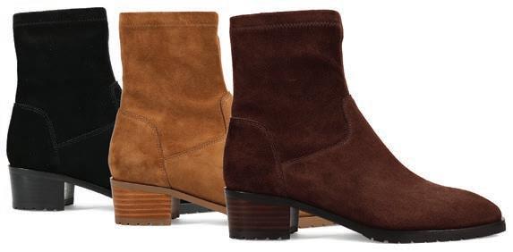 Vaneli Oleg ankle boot, crafted from water-resistant stretch suede with a side zip, padded insole, treaded rubber sole, and 1¾” stacked heel. $295
