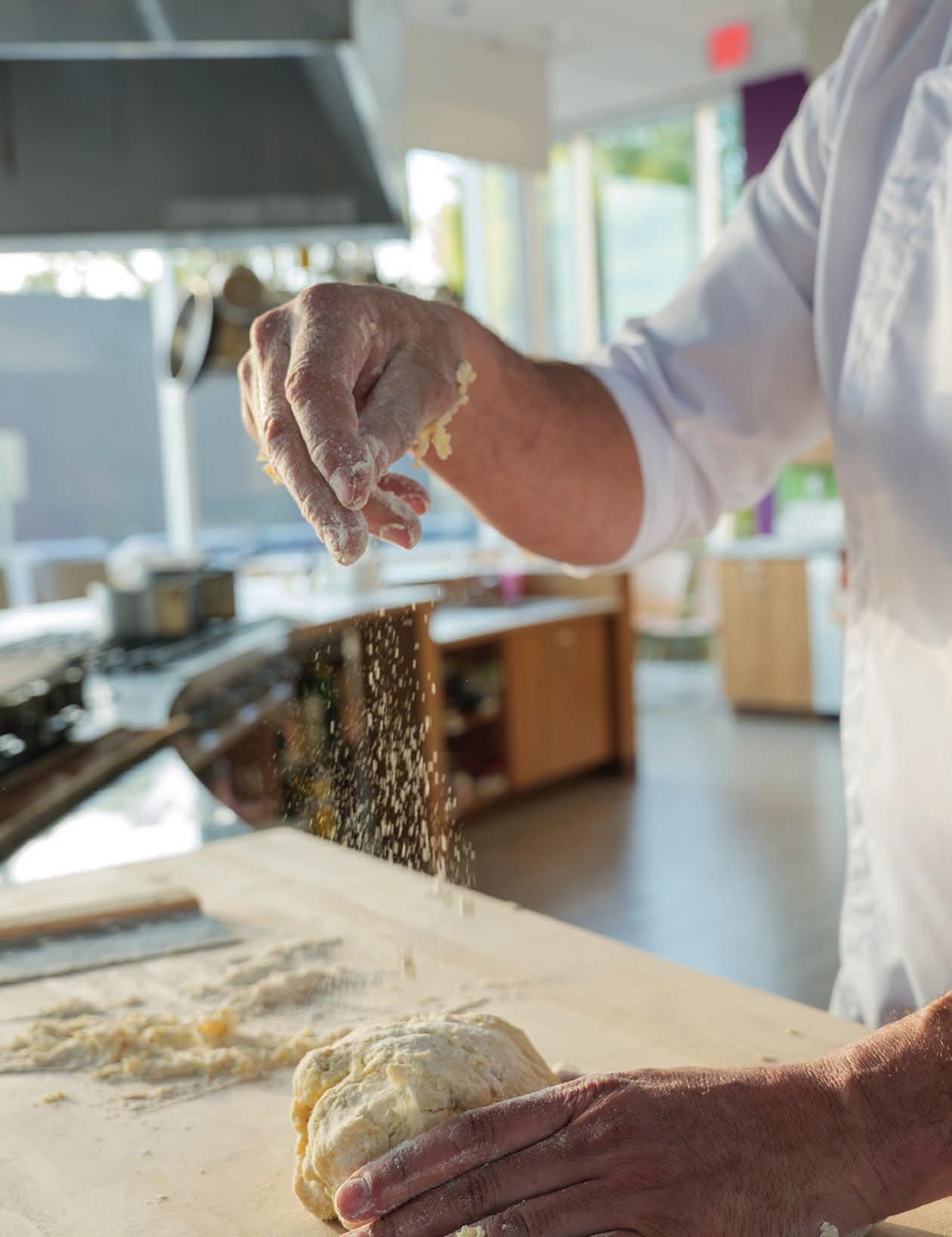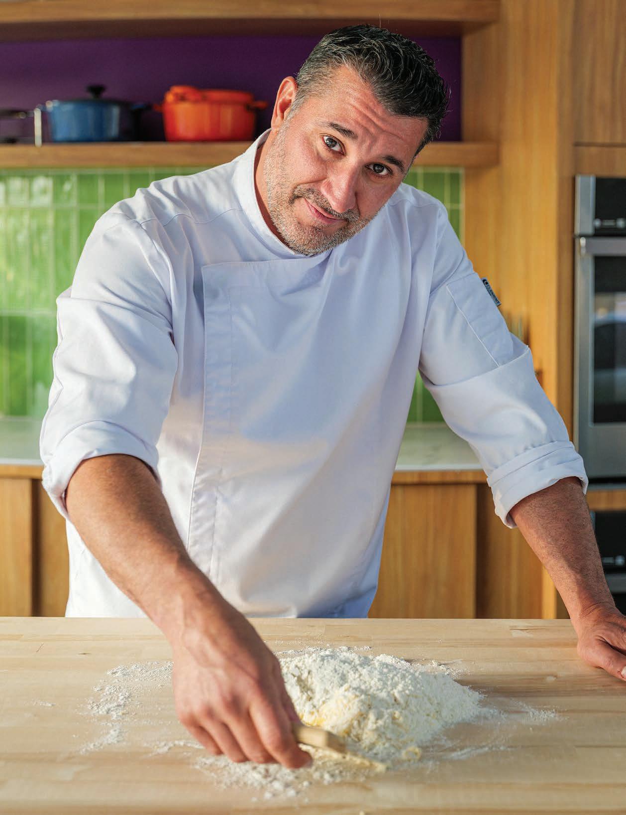 The consultation process starts with a phone conversation to discuss the client’s vision and kitchen space (“I’m not coming into a loft apartment where the counter is this big” he says signaling a notvery-big area), followed by an in-person visit a week or two before the event to finalize details.