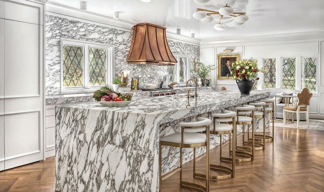 This full-home renovation was designed with luxury, elegance and sophistication at its core, tailored to reflect the client’s strong sense of style and fashion-forward taste. A dramatic blend of classic materials — like marble and brass — paired with bold modern art and eclectic furnishings brought striking contrast and personality throughout the home. The team collaborated closely with the architect, general contractor and trades to reimagine the layout and elevate every detail. Challenges included transforming the original 1960s floor plan to better suit modern living while preserving a sense of timelessness. The project was completed in 2023, resulting in a home that feels both refined and unapologetically expressive. Photography by Alise O’Brien