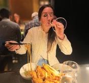 “When you take dough run through a sheeter, it’s like pound cake compared to a wafer,” Benack says. “Your body actually processes it differently. You ever have a big bowl of pasta and just feel like, ‘Oooh, man?!’ Well, you don’t with this.”