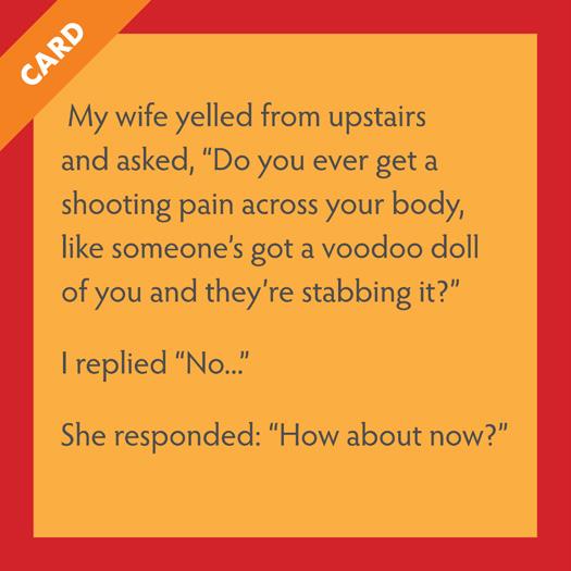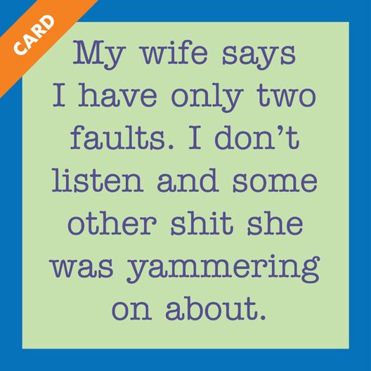 I just bought my husband a ‘Get better soon’ card. He’s not sick... I just think he could be better.