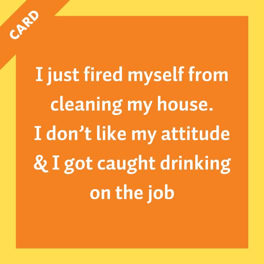 I just fired myself from cleaning my house. I don’t like my attitude & I got caught drinking on the job