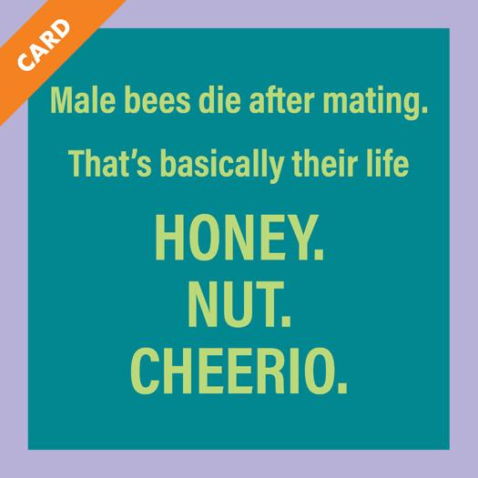 Male bees die after mating. That’s basically their life HONEY. NUT. CHEERIO.
