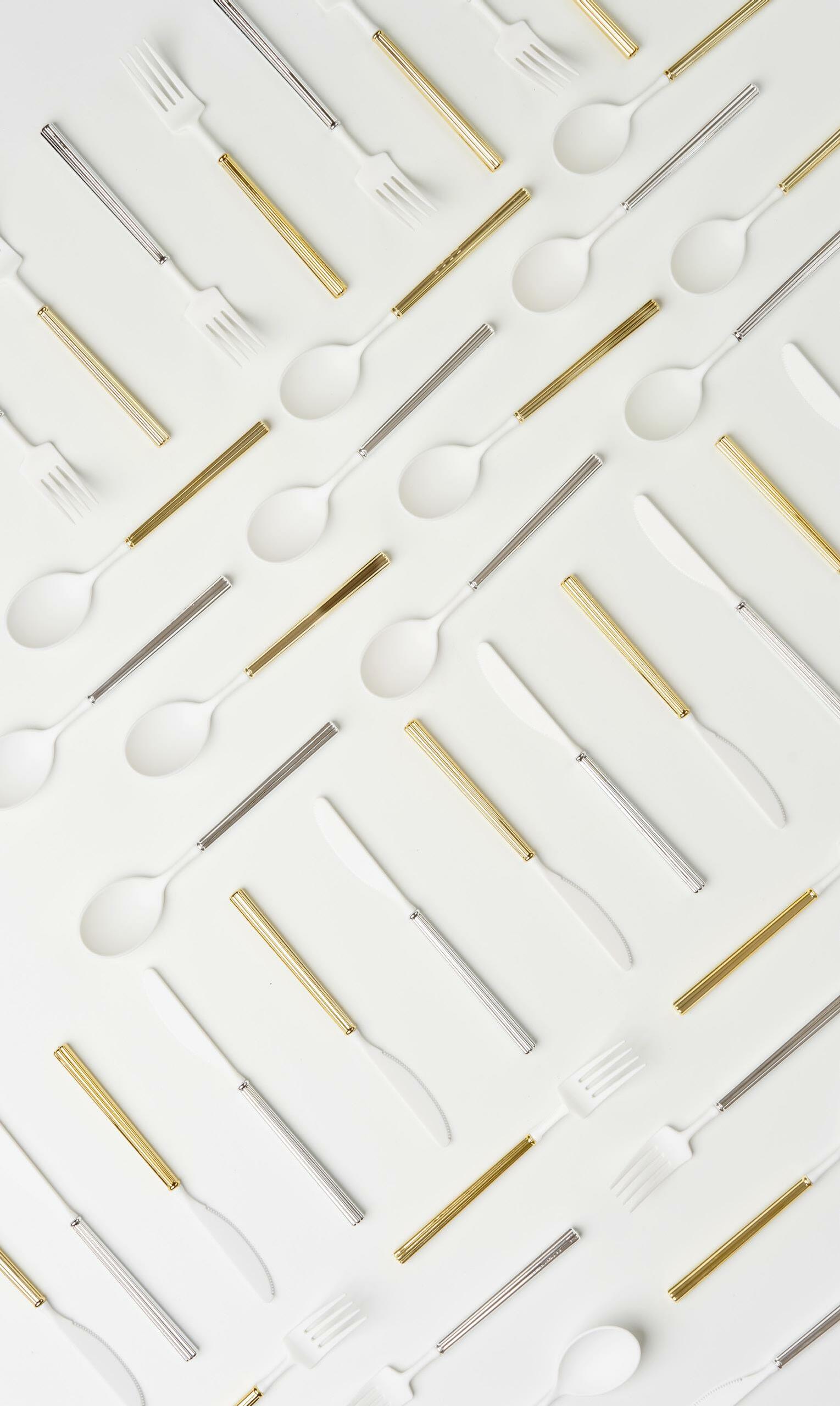 Our new VILLATM cutlery has smooth ridges and clean lines for a beautiful, traditional look. It is available in silver, gold, red and navy blue.