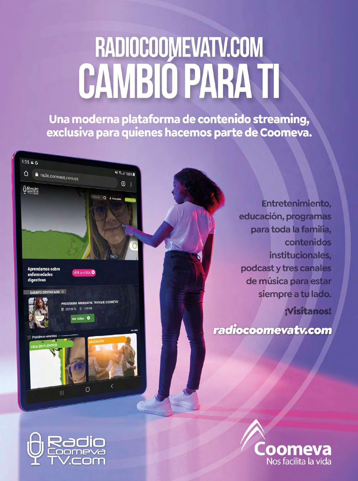 La REVISTA COOMEVA es una publicación dirigida a todos sus asociados y a sus familias. Circulación nacional gratuita. 11.700 ejemplares impresos y 150.500 suscripciones virtuales.