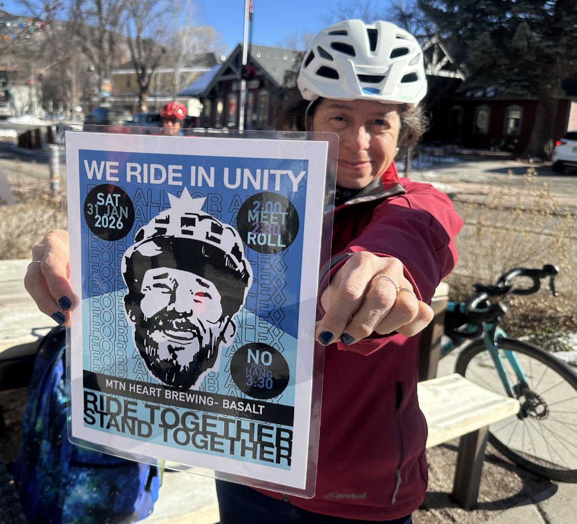 The idea for a solidarity ride came from the folks at Pretti’s local bike shop in Minneapolis, the Angry Catfish. Their Instagram post on Jan. 26 honored Pretti as “one of us” and served as a call for action for other shops and clubs to organize their own rides. According to some sources, there were over 200 rides across the globe on Saturday, including two in Carbondale and Basalt.