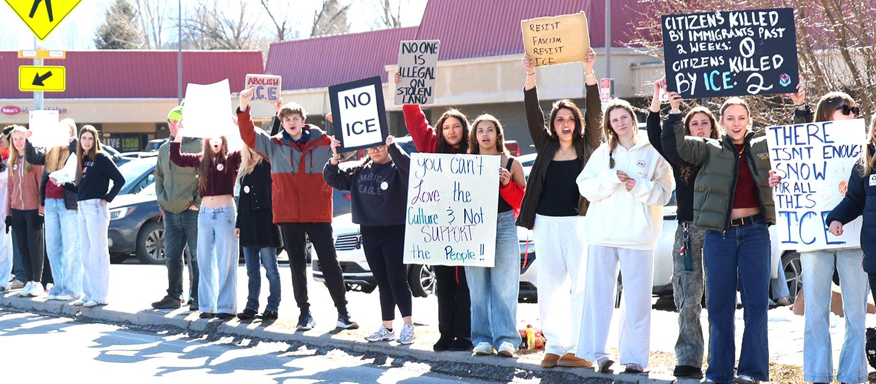 Teachers greeted students at Roaring Fork High at the start of the day with a “walk-in,” showing support for immigrant families amid increasing ICE enforcement activity around the country and clashes with protestors. Most (but not all) of the students who left during the class to participate in the protest returned after lunch. These protests took place days following an ICE arrest in Old Snowmass.