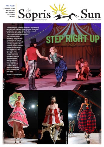 The Carbondale Fashion Show once again awed spectators, bringing a circus-themed, theatrical production roaring to life at the Carbondale Rec Center, March 12-14. This year, Emily Fifer and Meagan Shapiro took the directorial reins with great success. Landan Berlof played ringmaster, energetically weaving together the carnival-esque creations of dancers, aerialists and designers — all carried by more than 60 volunteer models. An event of this size is made possible thanks to a large team coordinating every little detail. Find the show program archived at www.issuu.com/ soprissun