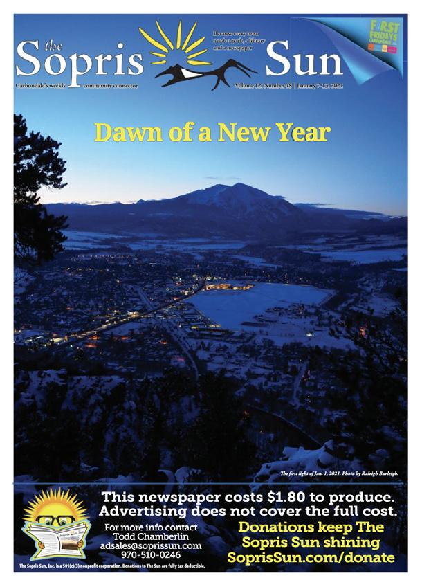 The Sopris Sun Board meets at 6pm on second Thursdays at the Third Street Center. The Sopris Sun, Inc. is a 501(c)(3) nonprofit corporation with a mission to inform, inspire and build community by fostering diverse and independent journalism. Donations are fully tax deductible.