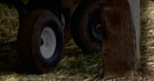 A sliding glass door opens unexpectedly, and we see Carrie enter the yard. She gently picks up Jewel and carries her into the house.