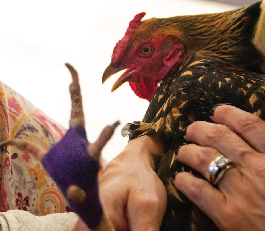 “After we remove the plug, we’ll treat for the infection. They heal well. Chickens are durable and this is manageable, but you have to be comfortable digging into a chicken’s foot.”