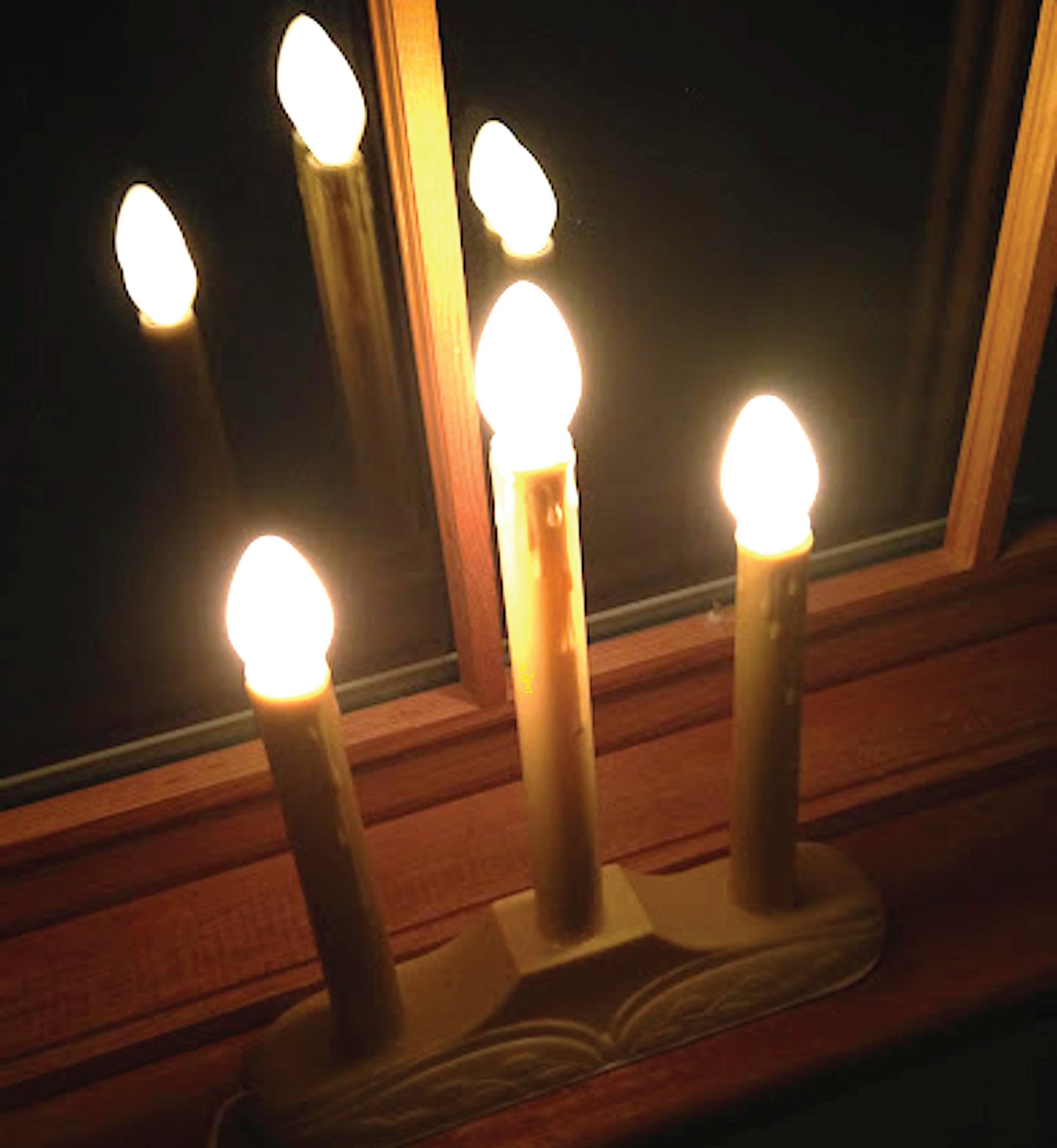 When I was young, as young as I can remember, my Aunt Kitty and I would move through the rooms of the big white house at 45 New York Street, plugging in each electric candle, watching as the orange bulbs filled each room with a soft glow. Then, I would sit in the big chair by the front room window and wait for my mother’s car to turn onto