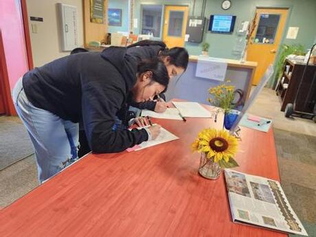 Judith Alvarez como voluntaria del consulado móvil de Guatemala a la par de un asistente que tomó ventaja de los servicios traídos hasta nuestro valle el pasado 18 y 19 de octubre. Foto compartida en Facebook por Consulado General de Guatemala en Denver, CO