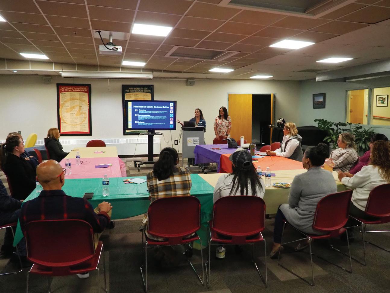 Catorce adultos, dos niños, un reportero y tres funcionarios del ayuntamiento asistieron a la jornada de puertas abiertas de la Junta Asesora Latina el 16 de octubre. Se sirvieron tacos y enchiladas, además de deliciosos pastelitos, y cinco personas solicitaron unirse al grupo que fue creado oficialmente por una resolución hace dos años, pero que ha tenido dificultades para tener impulso. La concejala Christina Montemayor lideró la iniciativa junto con la Oficial de Información Pública, Anna Ramírez. Foto por Raleigh Burleigh