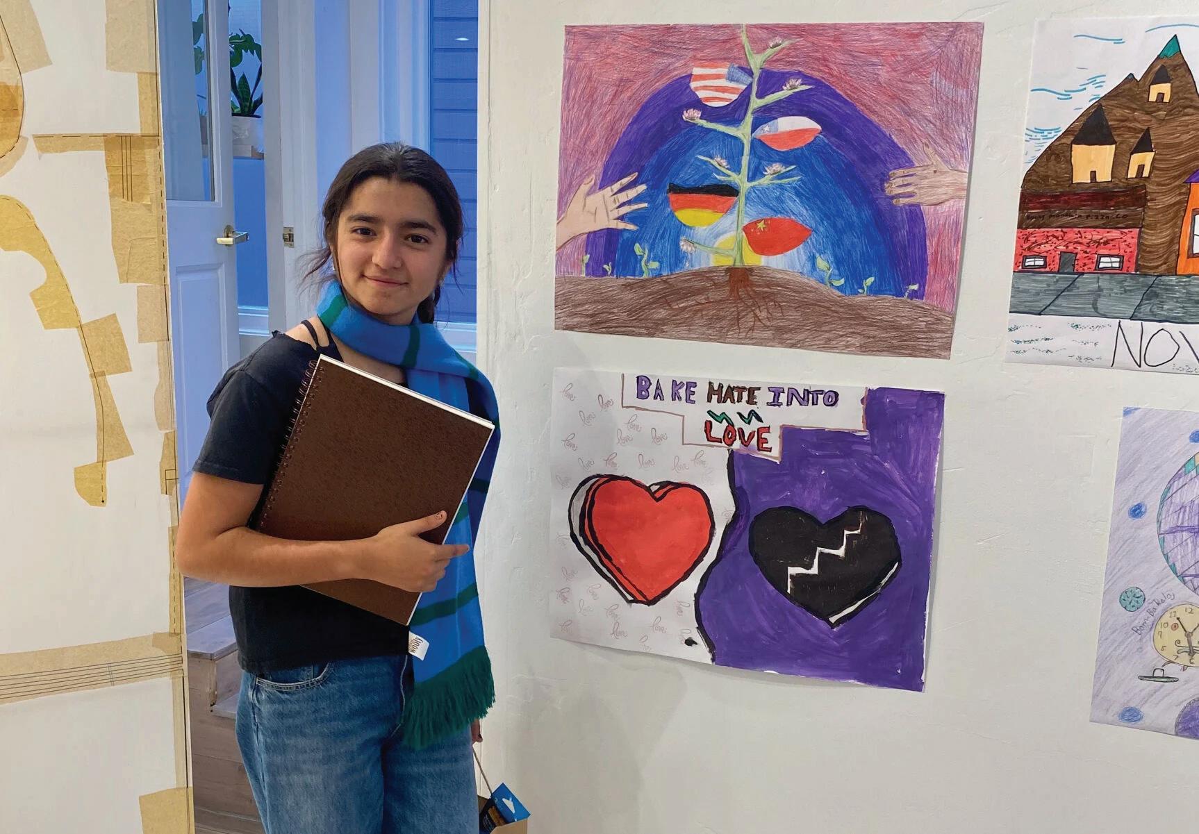 La estudiante de séptimo grado Amanda Cespedes ganó el primer concurso de ‘Poster’ de la Paz del Lions Club de Basalt con una obra inspirada en “Juntos como uno”. Su poster sobre la unidad global avanza a la competencia del distrito. El club, junto con The Art Base, busca ampliar el proyecto el próximo año. Foto de cortesía para Aspen Daily News