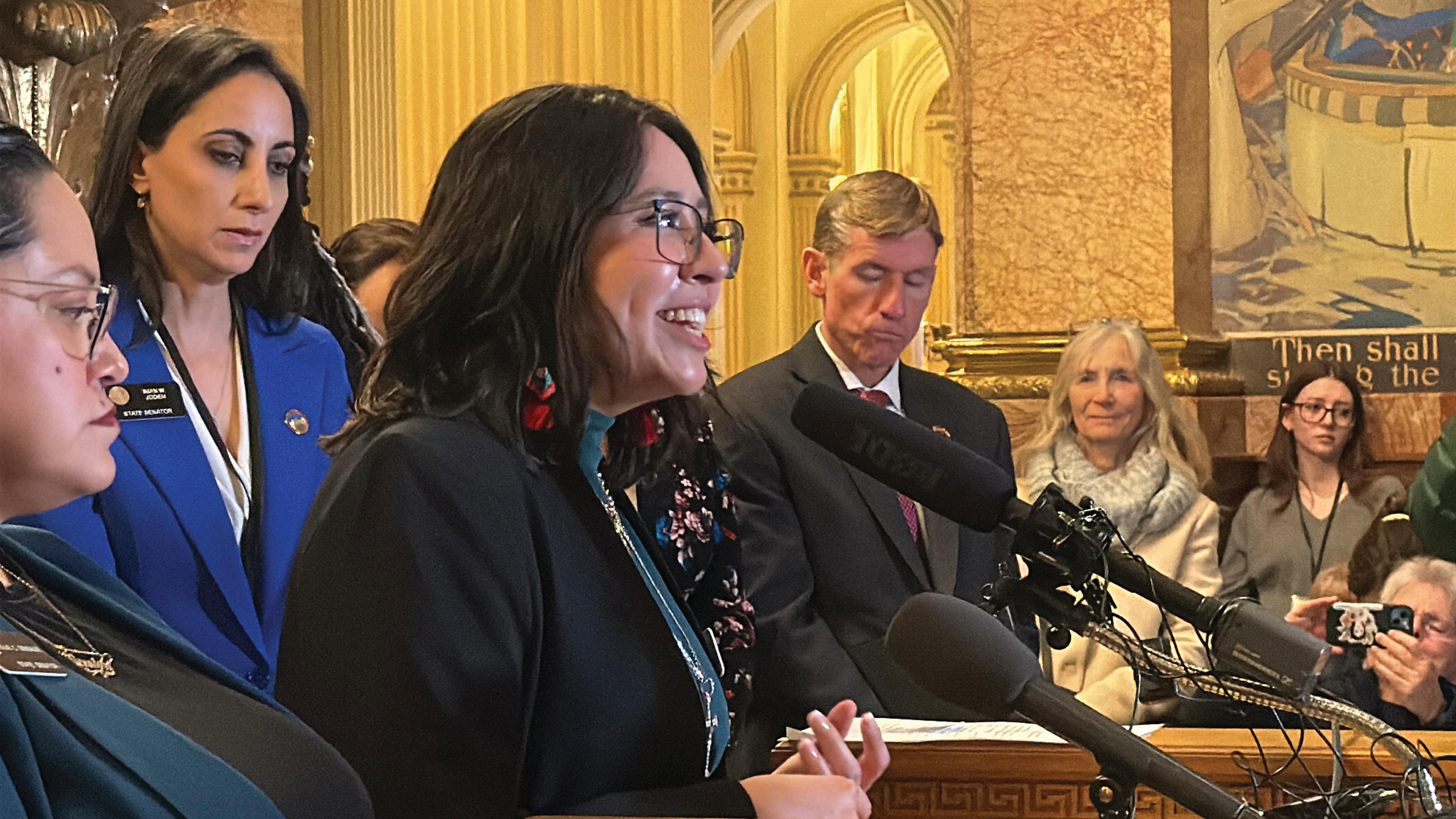 La representante estatal Elizabeth Velasco, co-presidenta del Comité Demócrata de Legisladores Latinos y líder de diversas iniciativas, participó en una conferencia de prensa sobre las voces inmigrantes en el Capitolio de Colorado el miércoles 22 de enero de 2025, en Denver. Foto por Jackie Ramírez.