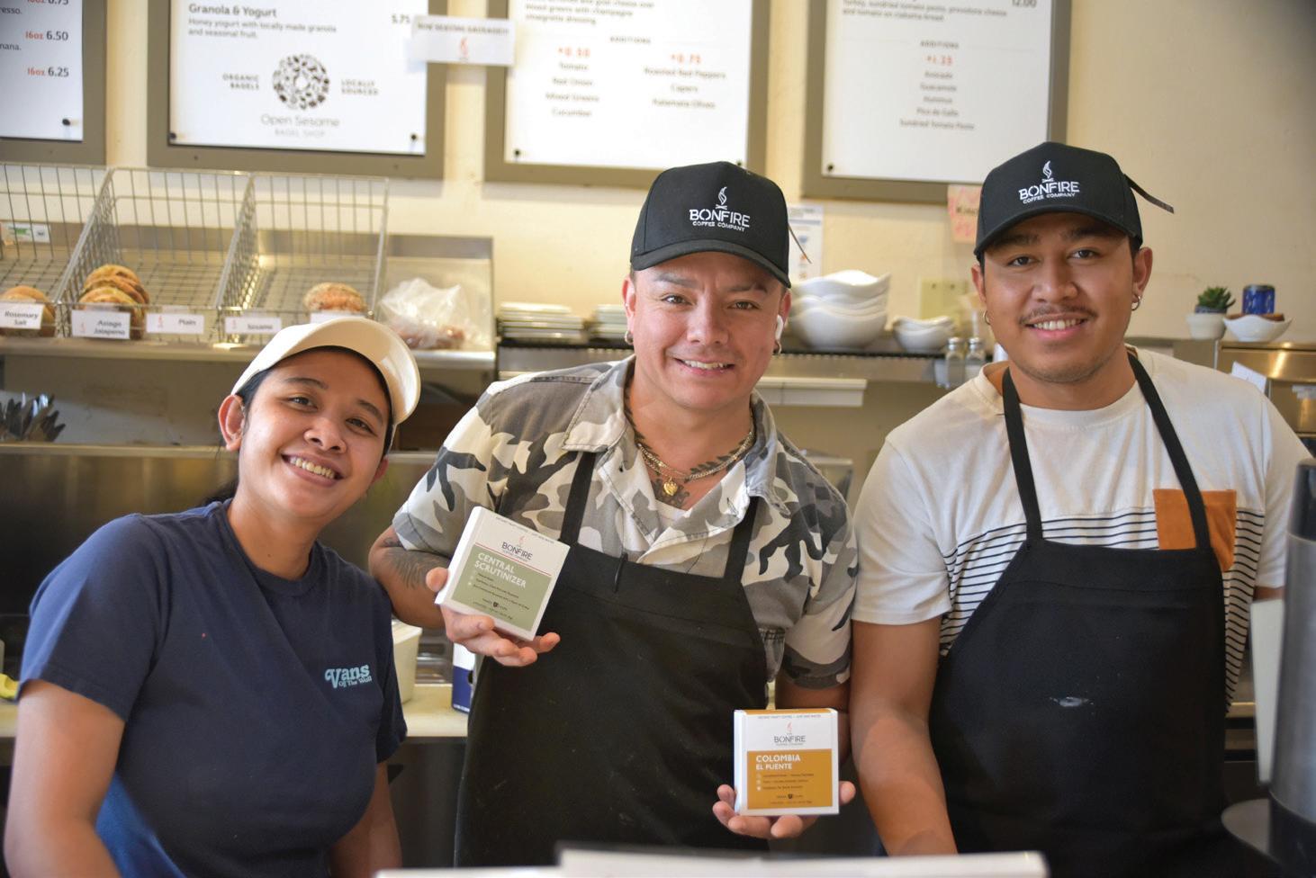 Conoce a los trabajadores de Bonfire quienes estuvieron en entrevista con Sopris Sun la semana pasada (de izquierda a derecha) Novy Anggreni, Oscar Soto y Leng Saga evalúan las nuevas opciones instantáneas del tostador. La entrevista saldrá en nuestras redes sociales próximamente. Foto por James Steindler