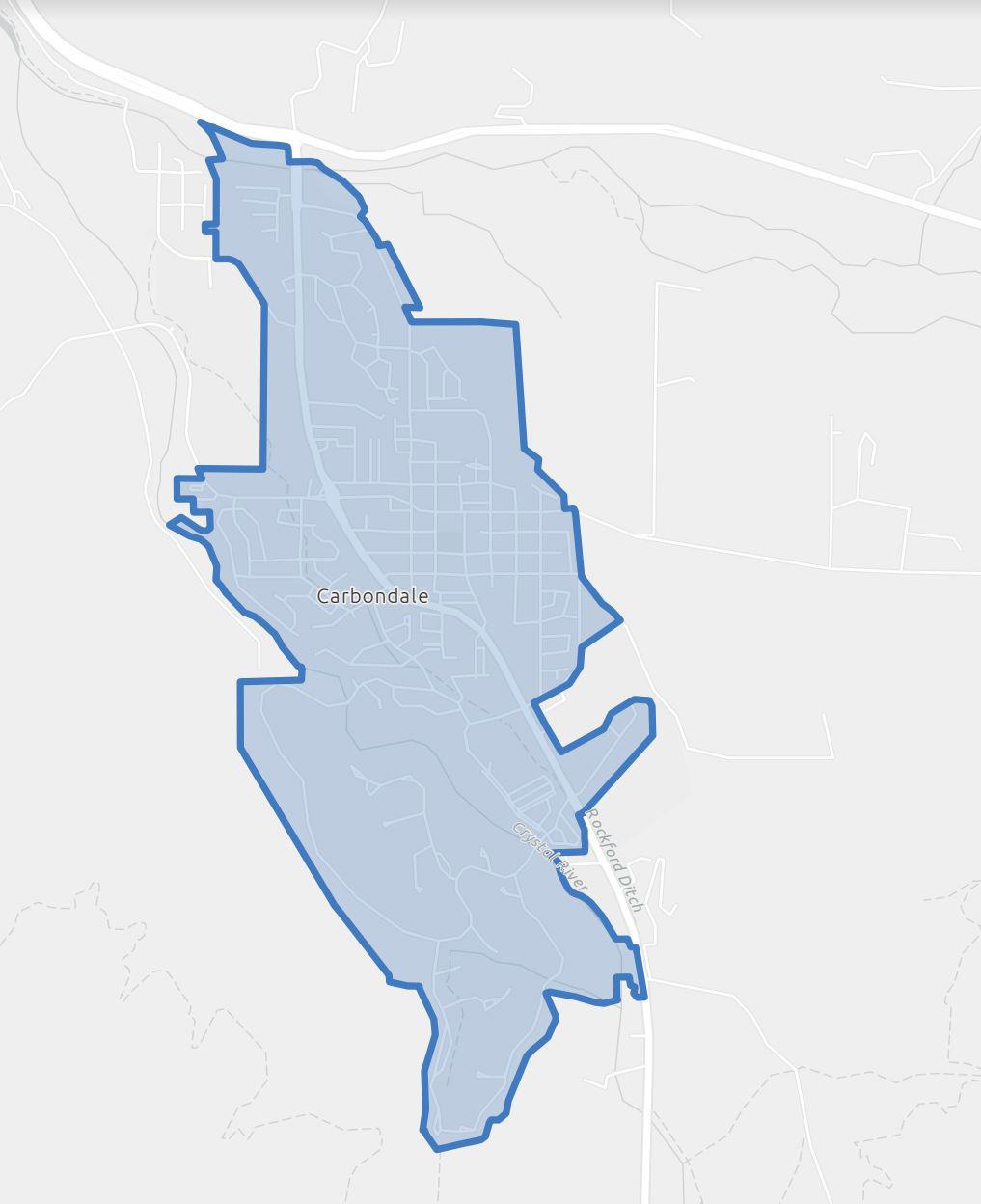 Mapa del área de servicio de Downtowner Carbondale. Grafica de cortesia