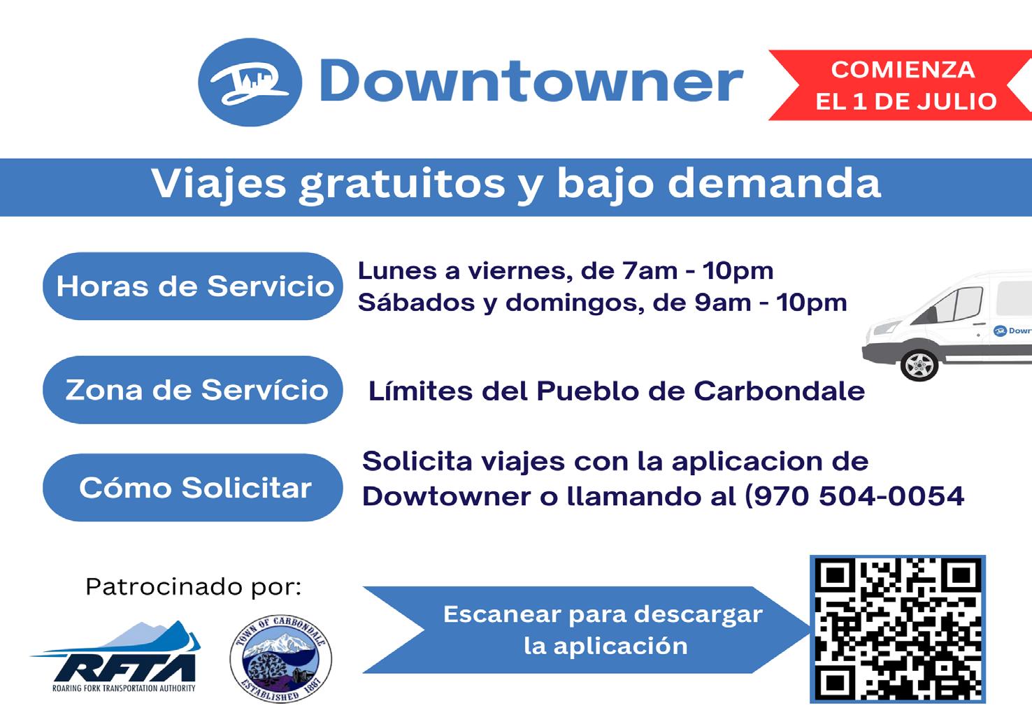 Downtowner Carbondale operará los siete días de la semana de 7 a.m. a 10 p.m. entre semana y de 9 a.m. a 10 p.m. los fines de semana. El servicio promete un tiempo máximo de espera