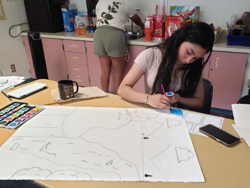 Para su proyecto, Abril, la sobrina de Hernandez, dibujó un río porque sentirse como en casa le hizo pensar sobre entornos tranquilos.