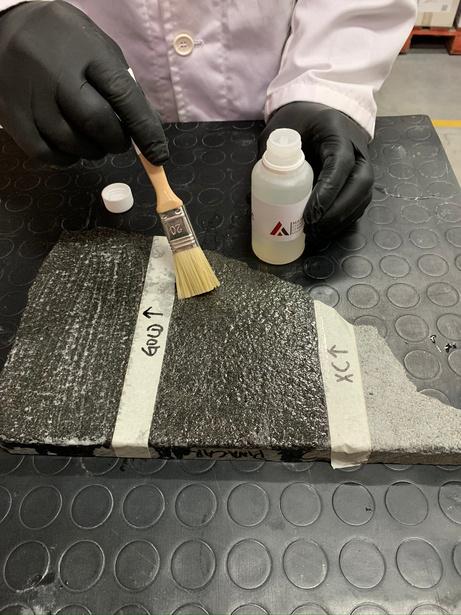 En nuestras instalaciones, contamos con un laboratorio propio, donde elaboramos las pruebas pertinentes sobre piedra natural para conseguir acortar el tiempo de espera de los clientes y mejorar el acabado final del tratamiento