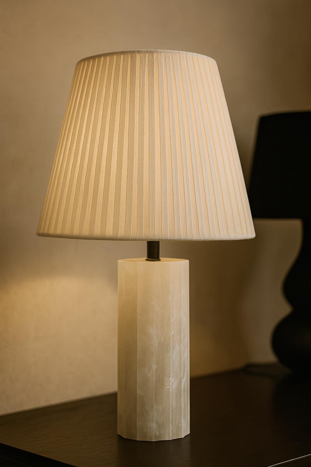 Fluted white onyx base. Vertical lines enhance its elegance.