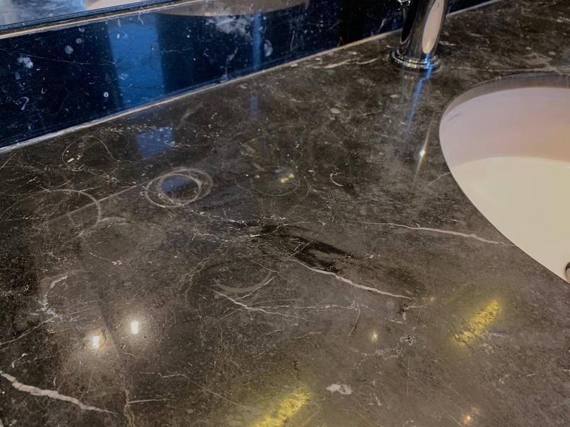 En el Hotel Heritage realizamos varios tratamientos específicos para reparar, limpiar, abrillantar y proteger la piedra natural de los baños de sus habitaciones. Como se puede observar en las imágenes de la izquierda, la piedra presentaba manchas y falta de brillo