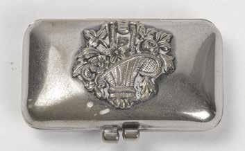 328 cAiXA oVAl século XIX prata inglesa; contraste de Londres 3 x 9,5 x 4 cm / 87g 329 cAiXA século XX prata russa 1,5 x 10 x 6 cm / 104g 331 cAiXA pArA cigArros século XX prata alemã de teor 800 3 x 13 x 8 cm / 200g 330 cAiXA metal 5 x 3,5 x 2 cm / 27g 328 329 330 331