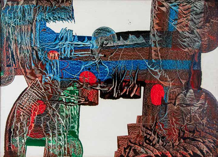 xilogravura em cores impressa s/ cartão, ass. sup. dir. e n. 24/50 sup. esq. catalogada com o n. BR 4540 da Galeria Bonino no verso Mi 41 x 47 cm / ME 43,5 x 48 cm