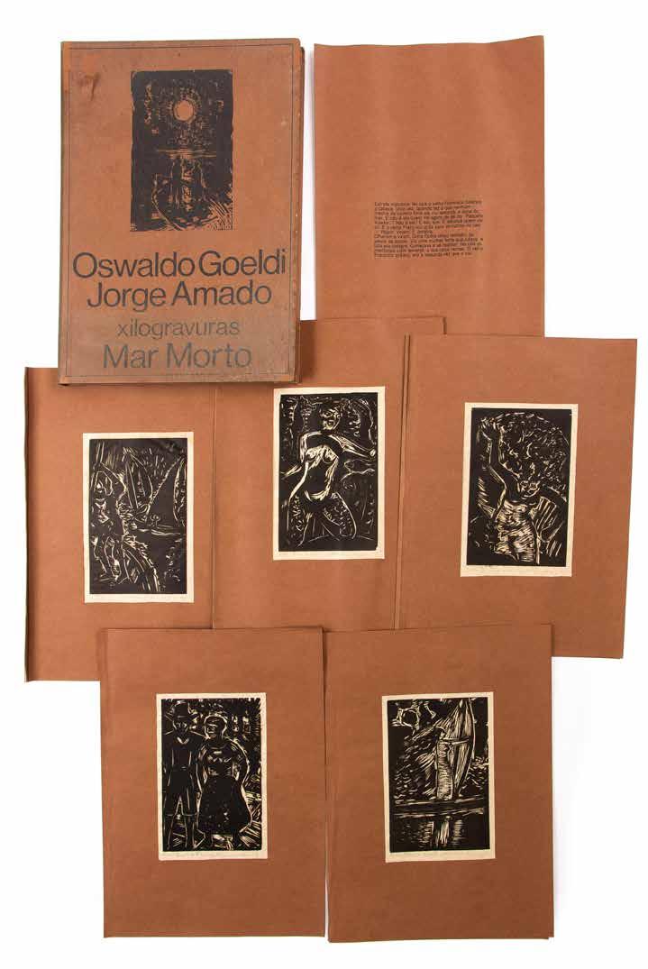 livro com 8 xilogravuras impressas s/ papel para ilustração do romance “Mar morto”, de Jorge Amado; tiragem de 100 exemplares numerados de 001 a 100, e 10 exemplares fora de comércio numerados de I a X exemplar 31/100