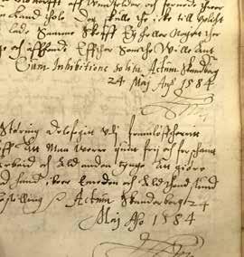 F2’s tekst: Anno 1572 beguntte ieg po tet den anden gan at wylle lesse denne bybel vt och war det wor herriss himmelfarss // dach och war den 15 maius gut vnne meg den saa lesse gut tÿl ere och mint sel tyl det besste amen