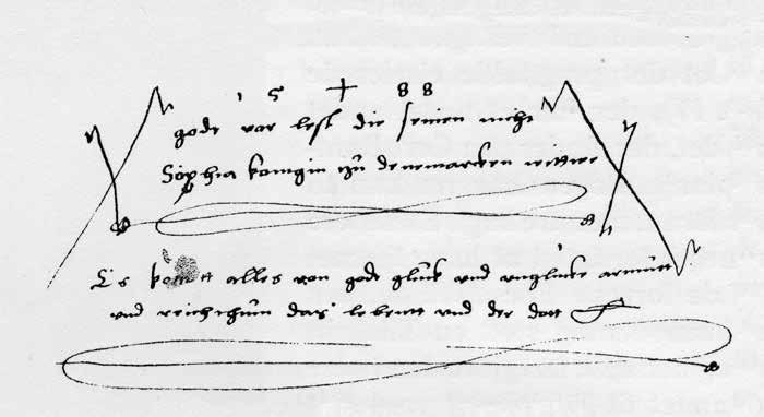 3) Notat 1 af 15. maj 1572, som er F2’s tilskrift forneden på fol. p4r i Die Propheten 1550 på den sidste side i Det Gamle Testamente: