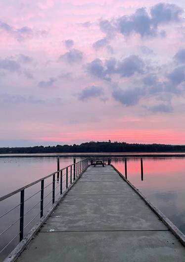 Vi slutter Seniorfolkemøde 2024 ved bådebroen med et glas og synger aftenen på hæld med Anders Hjorth Nielsen.