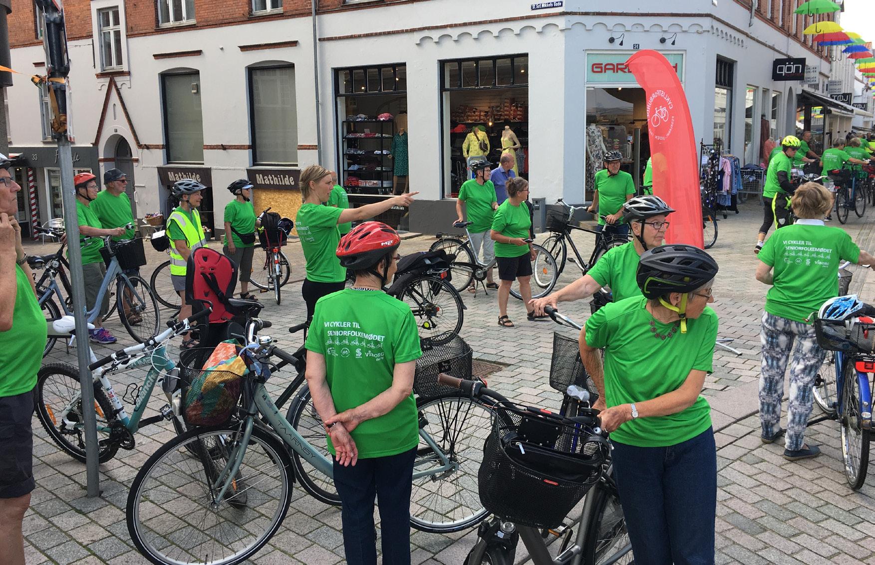 Har I mulighed for det, så gå eller cykle til Seniorfolkemødet. Det gavner både miljøet, dit humør og frigiver P-pladser. Se cykelruter i programhæftet.