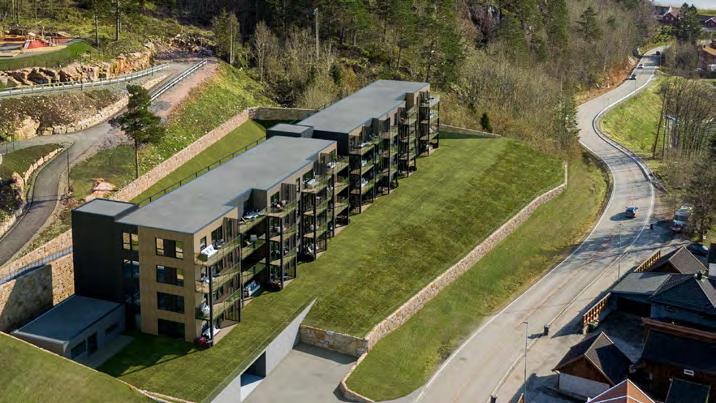 landlig og med panoramautsikt. Interessen for prosjektet har vært god og vi forventer at det øker nå som arbeidene har startet og bygget begynner å reise seg, sier Bernhardsen.Leilighetene i byggetrinn 1 varierer i størrelse fra 23,2 kvadratmeter til 116 kvadratmeter. De to minste leilighetene er solgt, men det er fortsatt mulig å sikre seg leiligheter fra 70 til 116 kvadratmeter. Prisene på de gjenstående leilighe tene i byggetrinn 1 er fra 4,8 til 9,4 millioner kroner.ENO Arkitekter, som har tegnet leilig