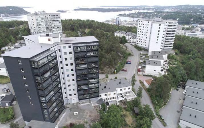 1961 med 60 leiligheter blir etterisolert, får nye fasadeplater, er rørfornyet og radiatorer er energioptimalisert. Hele rehabiliteringen skal være ferdig i løpet av året.