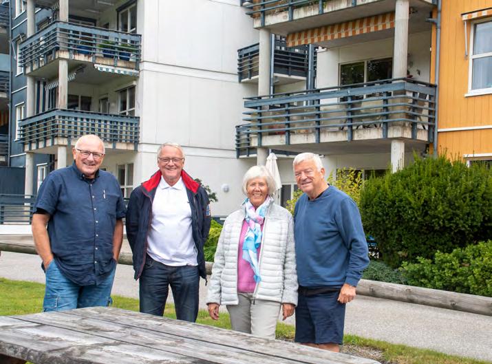 – Når vi åpner balkongdørene hører vi fuglene kvitre, ser rådyr som tusler rundt på området, det er så stille og fredelig her. Vi føler vi bor på landet, samtidig som det er kort vei til byen. Dette er vel gode grunner til å bli boende, sier de fire på benken.