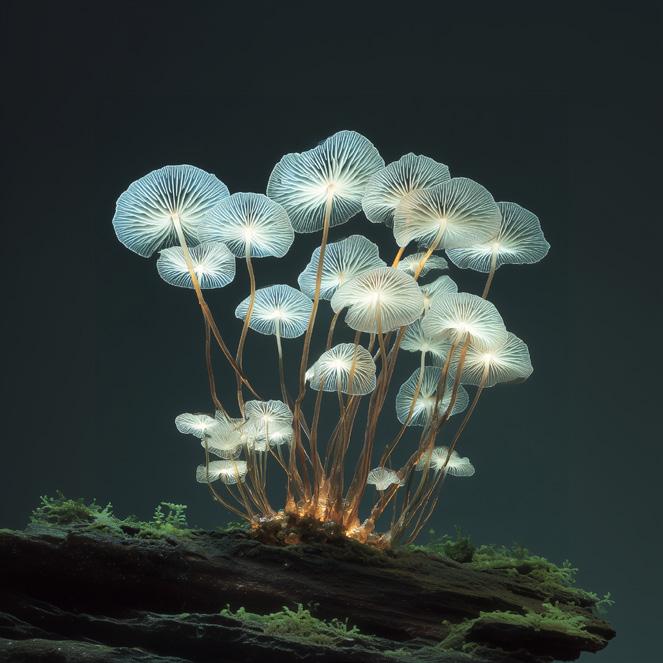 Perhaps the most beautiful discovery, these fungi grow in branching crystal-like patterns. Their transparent structures refract light, creating dazzling displays at dawn and dusk. It is hypothesized they use refraction to lure light-sensitive microfauna, aiding in spore dispersal.