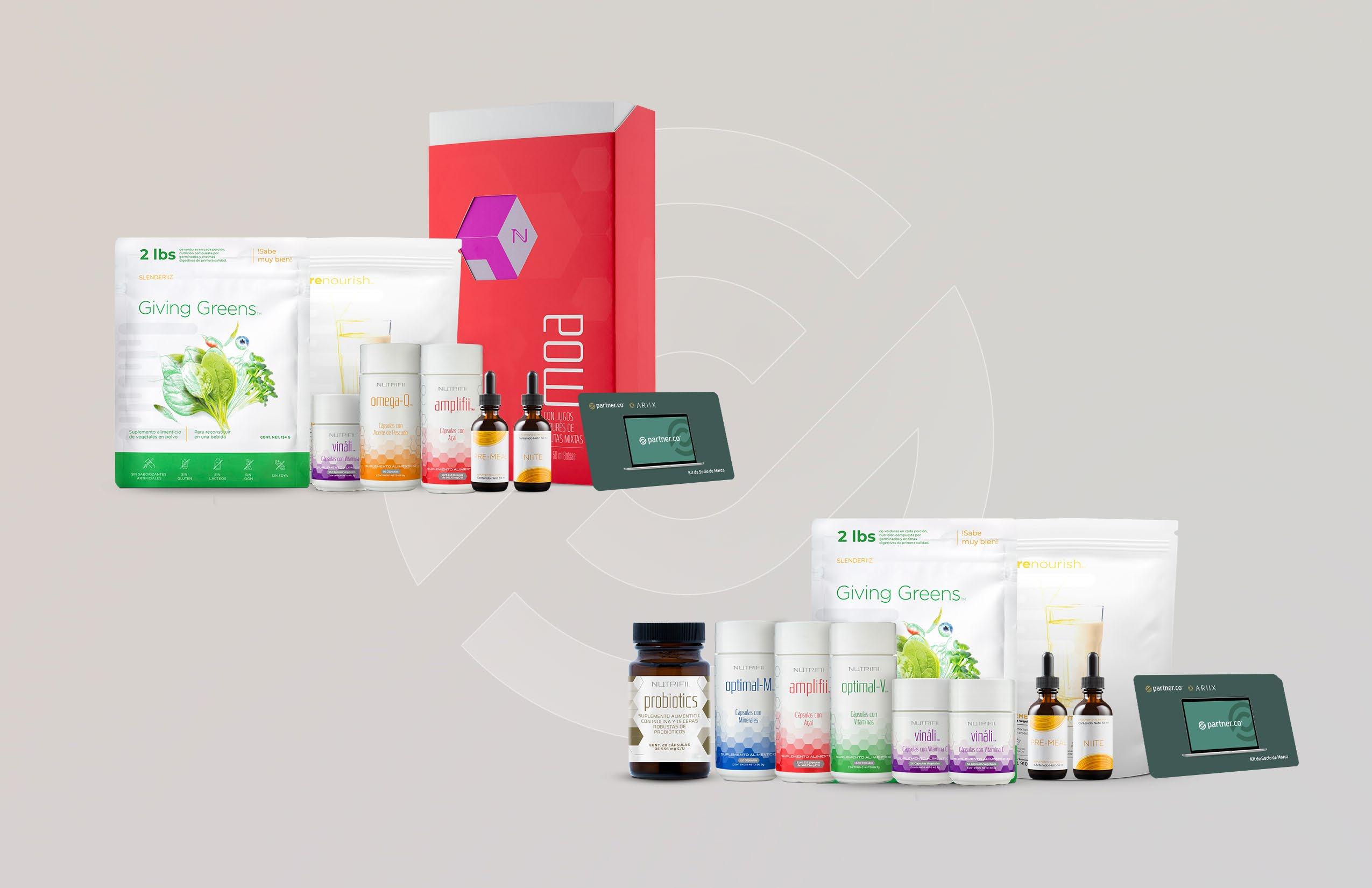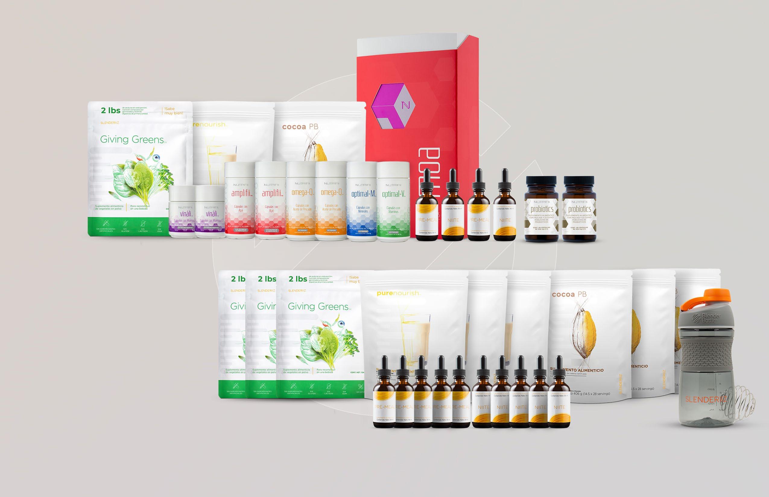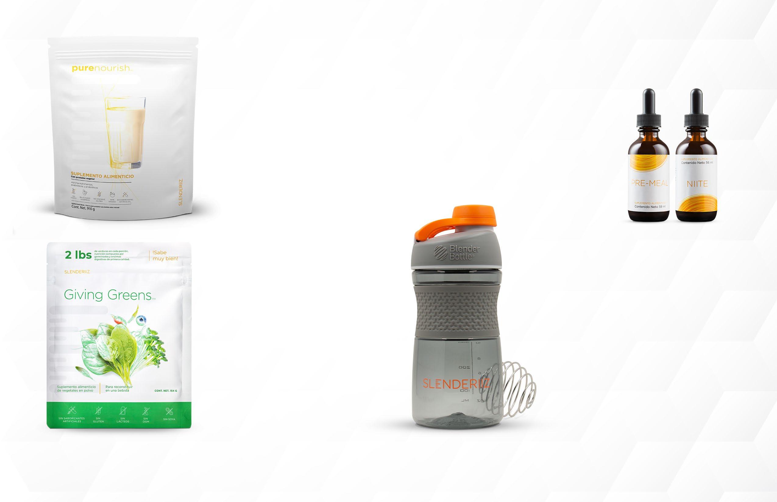 2.0 X2, SLENDERIIZ DROPS PRE-MEAL - NIITE, GIVING GREENS DRINK, PURE NOURISH NATURAL 4.0, AMPLIFII, KIT DE INICIO