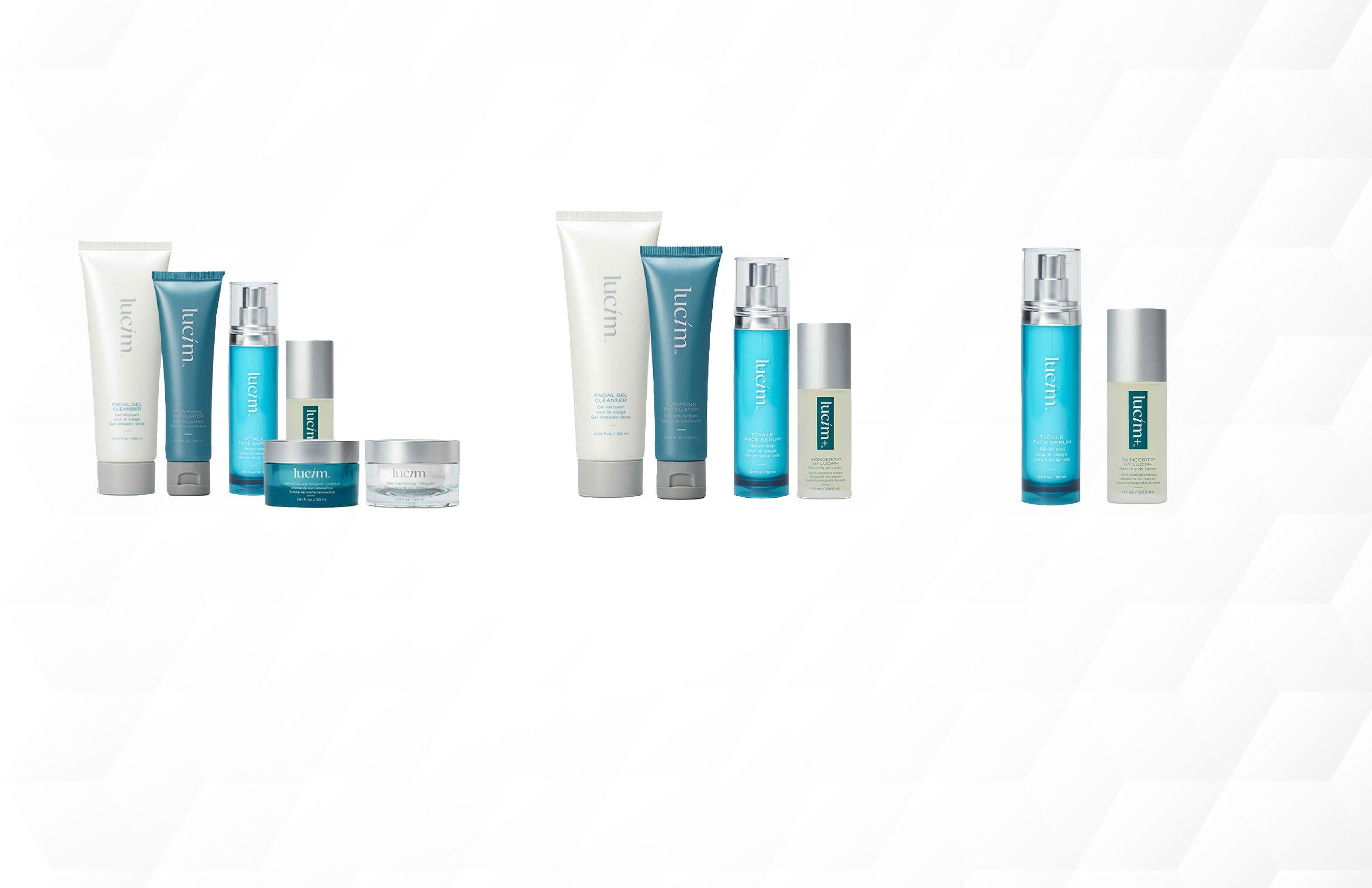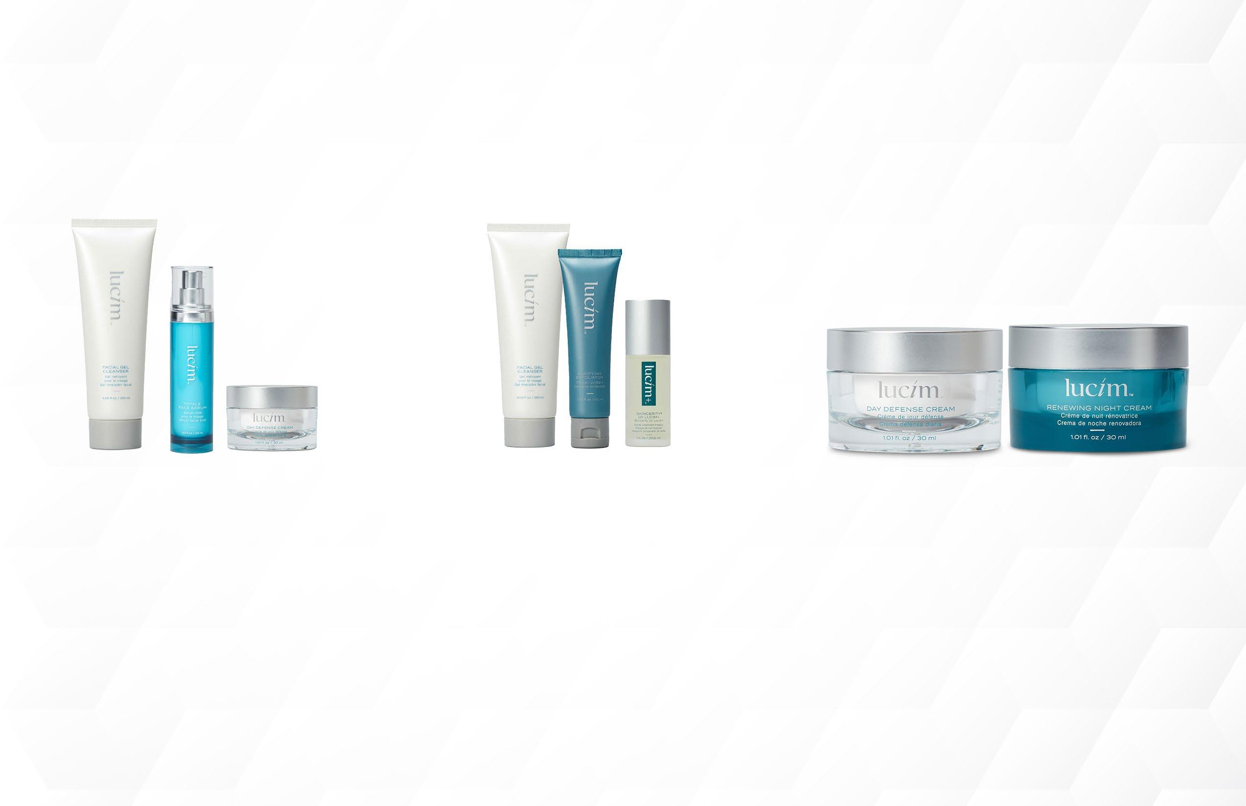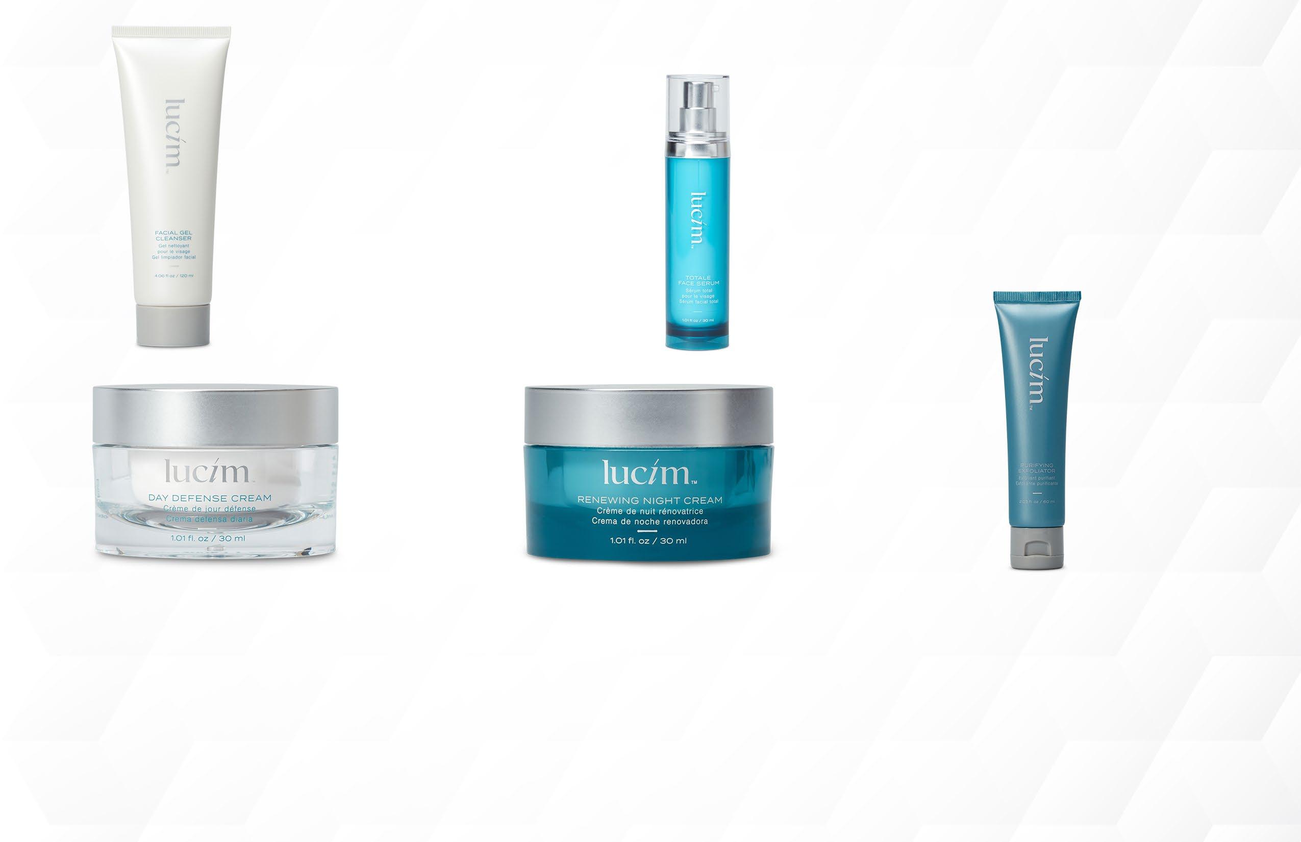 GEL CLEANSER, EXFOLIATOR, FACE SERUM, DAY CREAM, NIGHT CREAM, LUCÍM SKINCERITY