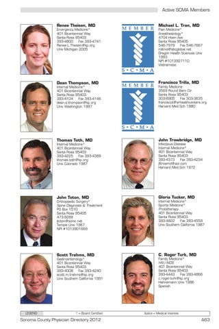 Internal Medicine* Sports Medicine* Prolotherapy 401 Bicentennial Way Santa Rosa 95403 393-4822 Fax 393-4559 Univ Southern California 1987