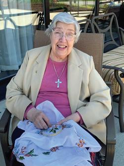 Sister Mary Peter Kaminski came to Sylvania, OH from SS. Peter and Paul Parish in Detroit, MI, where she was profoundly influenced by the example of the Sylvania Franciscans who taught her. Her 60 years of ministry were spent mostly in health care, working in hospitals in Ohio, Michigan, Texas, and Virginia for 38 years. She found this work fulfilling and also became involved in the parishes she attended wherever she lived and worked. Currently, Sister serves as the Franciscan Library Assistant. In addition to her love and talent for making beautiful things, Sister Mary Peter likes to read, sew, do needlework, grow plants and advocate for ecological sustainability. She continues to influence people she meets with her Sylvania Franciscan spirit, easy smile and pleasure in exchanging ideas.