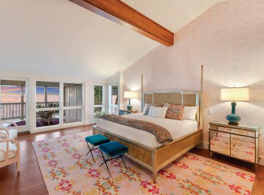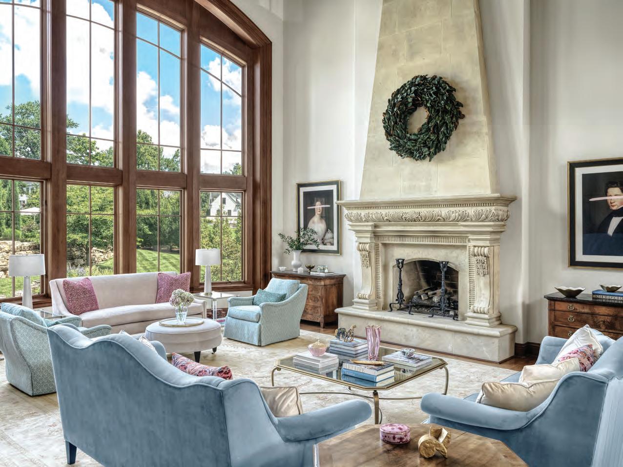 Restoration was extensive. Case in point: the ceiling in the great room. The 26-foothigh, black tongue-and-groove cedar ceiling was torn out and reinstalled in a more natural color to recreate the original architecture. “It was a big deal to do this, the scaffolding was up for months, but absolutely necessary for the restoration project to be successful,” says Gigi, founder of Gigi Lombrano Interiors. “All the spaces in the home have a direct relationship with the great room.”