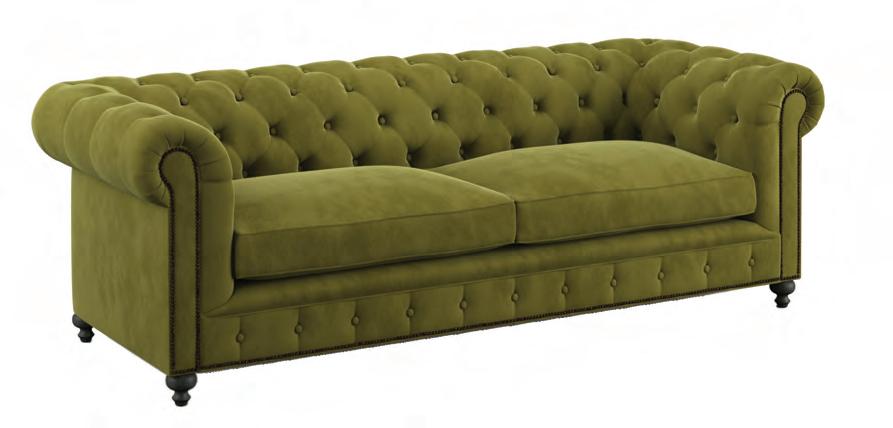 Logan Chesterfield sofa in green tea velvet, available at Frontgate.